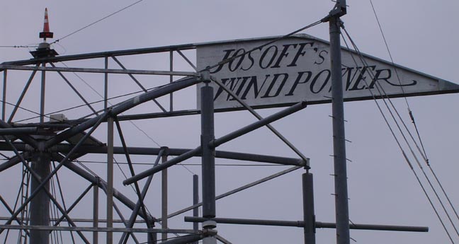 I recently had the pleasure of meeting Larry Josoff. Larry and his brother, Roy, have been designing and building a mechanized windmill as a hobby, which can only be described as a passion, for some 16 years now. Out in the fields of Nebraska, you can find more than just corn sometimes. The Josoff Wind Power windmill hardly stands out like the large tall propeller type modern windmills. It is built out of mostly galvanized power pole pieces with sails of galvanized steel. Don't let the 'farm building' appearance fool you. The corrogated steel sails are directed into the wind by computer controlled motors and the entire massive rotor turns a 'geared up' generator. With eighteen sails in three tiers of six each, the wind generator looks a bit like an amusement park ride. When I visited, Roy and Larry were still attaching the middle section to the lowest six sails.
