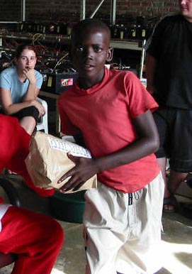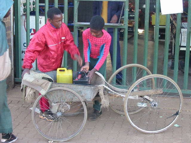 They may not have been finished, but I suggested tying the tops of their triangular beginnings of trusses. Also, an 'X' brace will help counteract any twisting if the bridge is tested. It looks like Themba and his friend started cleaning off the match heads to make better building sticks. This is how the exercise helps one get 'hands-on' learning. Shirley, it turns out, helps run a business with her husband -- a sort of community level utility. They sell battery charges and portable fuel. Another area of interest of mine, energy. In the area where Themba lives, energy is carried home by the children instead of hooked up directly. The structures are too temporary. This is a whole different story for another time. |